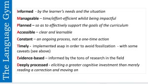 My review of the specialised literature during the first year of my study made it all too clear to me that WCF is a far more complex issue than it appears on the surface. It is much more than simply marking errors, it must empower learners to become active, intentional, self-monitoring agents. Easier said than done!, you may think to yourself as you read this. Can’t blame you. Yet, the success of WCF is all about student intentionality.