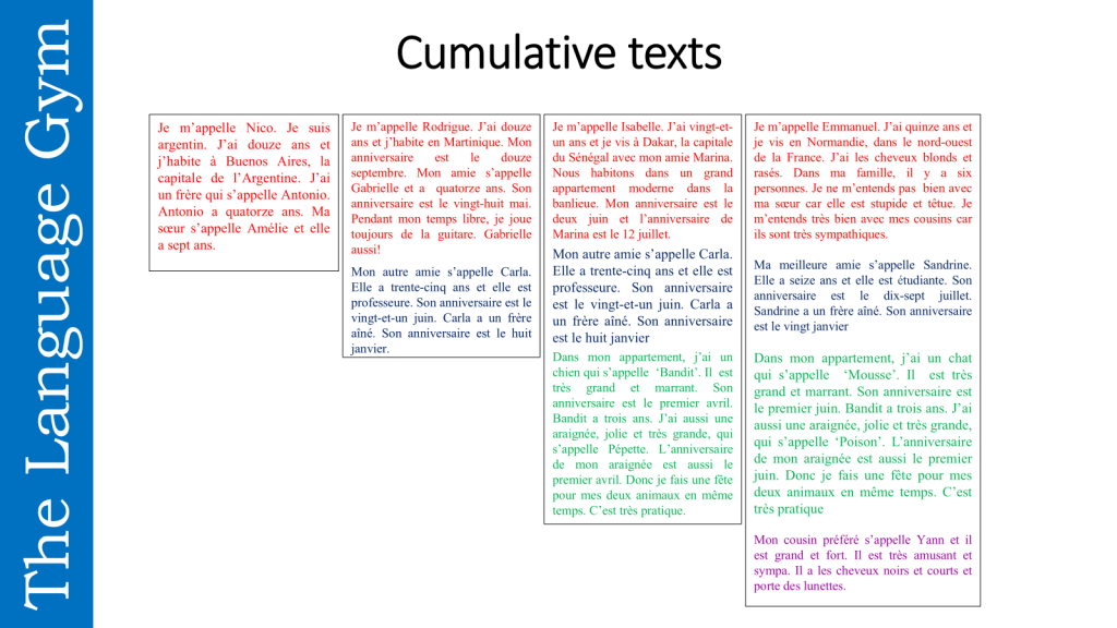 This technique involves exposing learners to multiple, highly similar texts that repeat the same target structures in slightly different contexts. Rather than overwhelming students with one taxing “authentic” document, narrow processing ensures a “flooding” effect that builds deep familiarity, even though the content remains diverse enough to sustain engagement, because the repetition occurs within varied but predictable contexts. This facilitates the incidental acquisition of syntax and vocabulary through high-frequency, comprehensible repetition.
